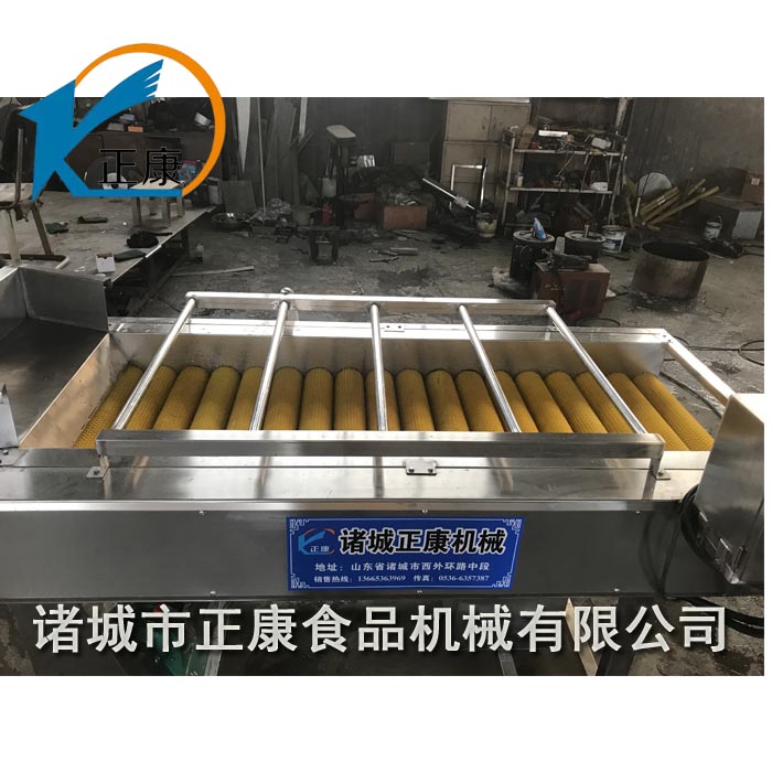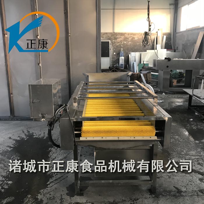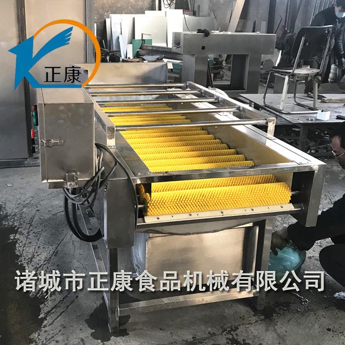機架采用SUS304不銹鋼制作,符合食品出口標準,流水線中各單機可根據(jù)用戶各自不同的加工特點量身定制,很大程度滿足工藝要求,清洗機采用高壓氣泡水浴清洗,清洗能力大,洗凈率高且不損傷物料,經(jīng)過旋翻至輸送網(wǎng)帶,在網(wǎng)帶上進行高壓水流清洗傳送到挑選平臺,進行公共分揀。
