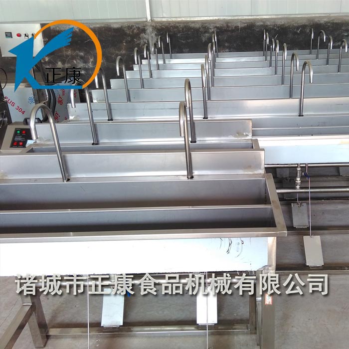 采用進口不銹鋼板制造,國際標準,標準型號為1人、2人、3人、5等人洗手消毒池,出水方式分腳踏式、感應式和膝頂式,各水嘴獨立設置,不影響其它水嘴的使用,方便使用及維護。消毒程序為:更衣室更衣-洗手消毒-干手器干手-水靴消毒-通過自動風淋室進入車間。